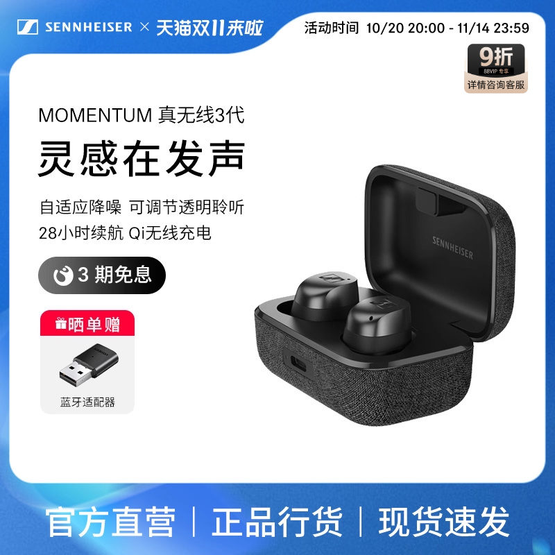 百亿】森海塞尔真无线3代MOMENTUM3入耳式蓝牙耳机自适应降噪耳塞