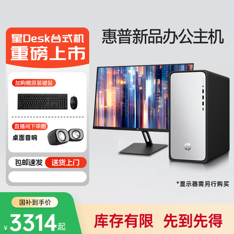【政府补贴15%】HP/惠普商务办公台式电脑家用迷你主机网课学习电脑全套企业采购财务台式机品牌整机官方旗舰