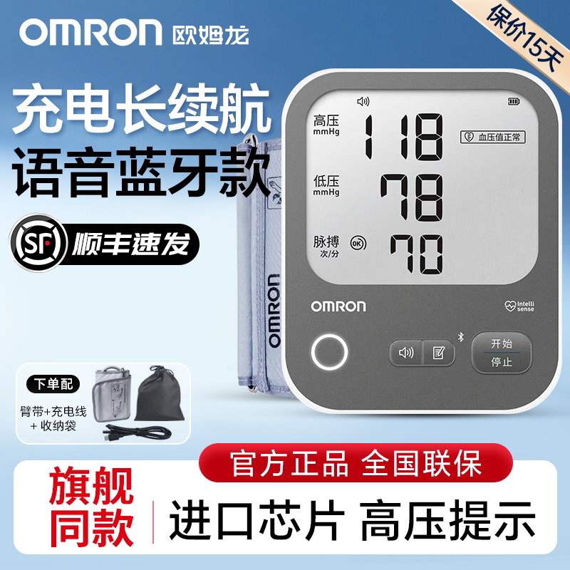 欧姆龙语音血压计电子血压测量仪高精准家用高血压医用臂式测压仪