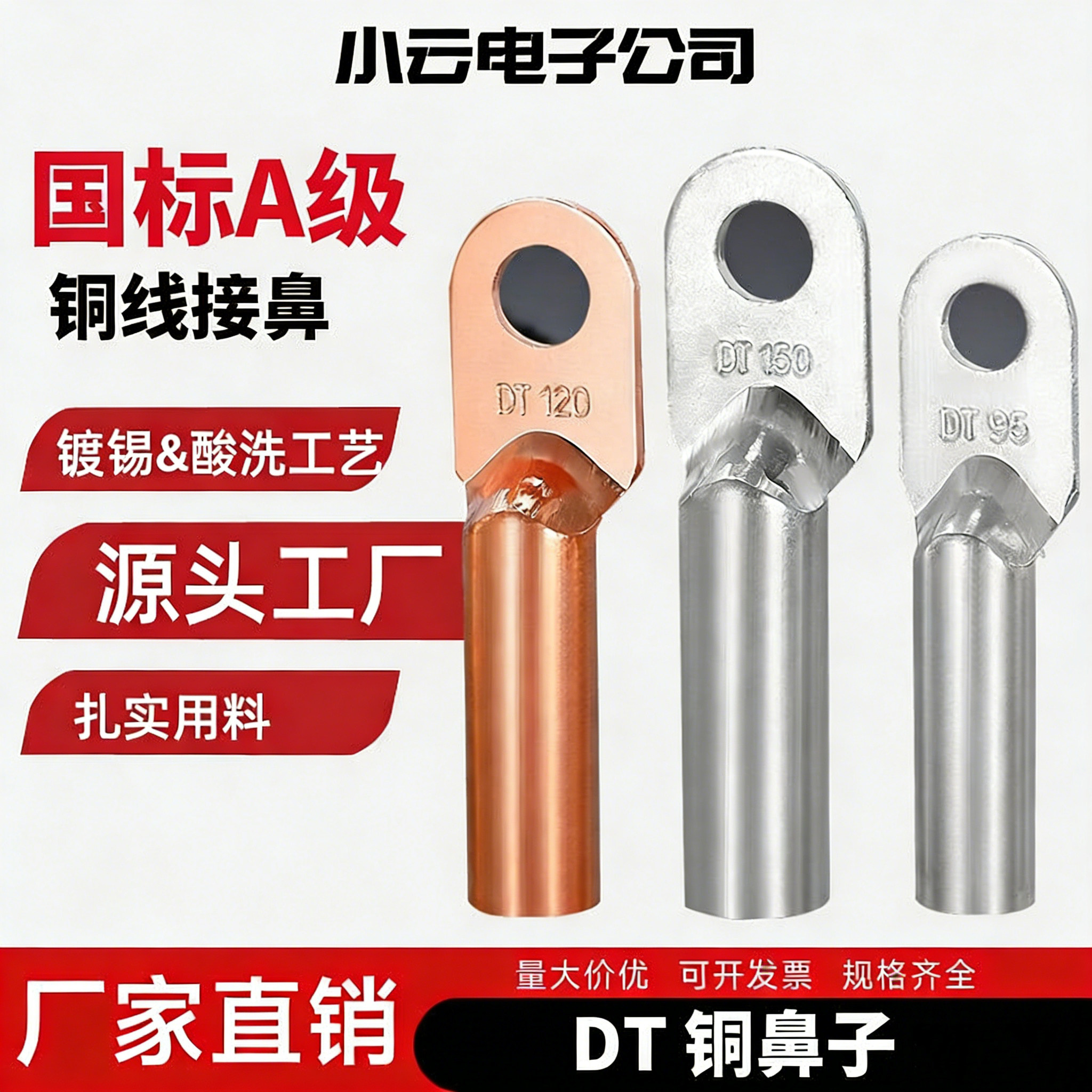 DT铜鼻子国标电缆铜接头镀锡铜线鼻16至630平方铜线耳铜接线端子