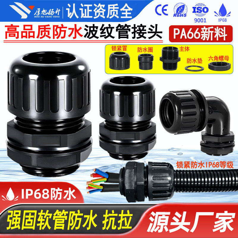 厚旭扬升塑料波纹管防水接头尼龙电缆软管锁头浪管弯头密封固定头