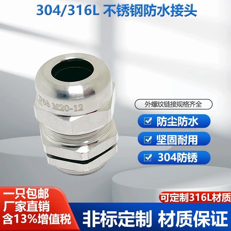 304不锈钢防爆格兰头M20金属填料函防水电缆夹紧密封葛兰接头G1/2