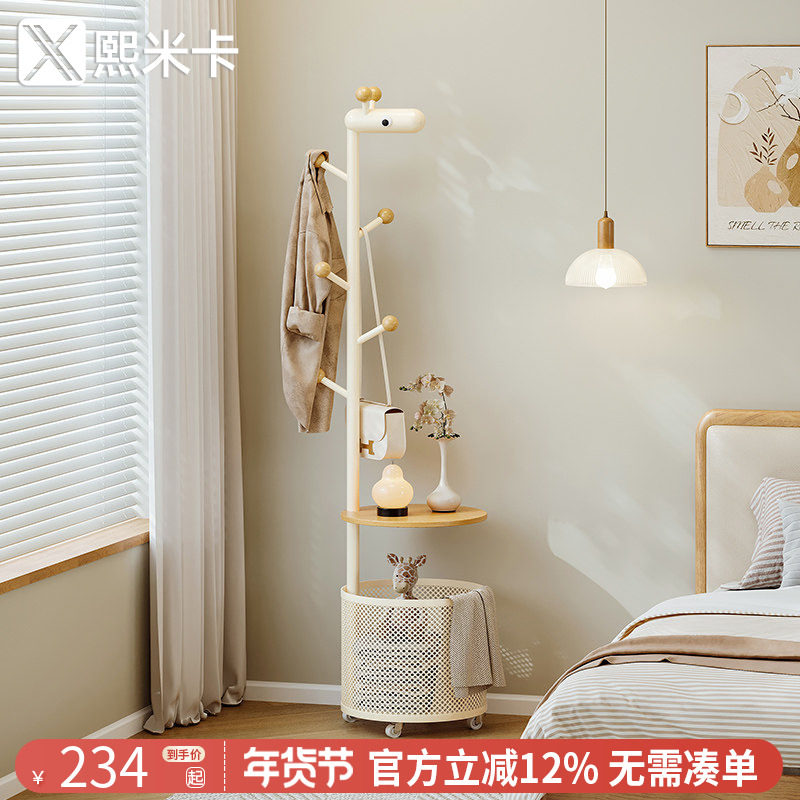 创意小型床头柜衣帽架一体替代神器铁艺置物架床头挂衣架落地卧室