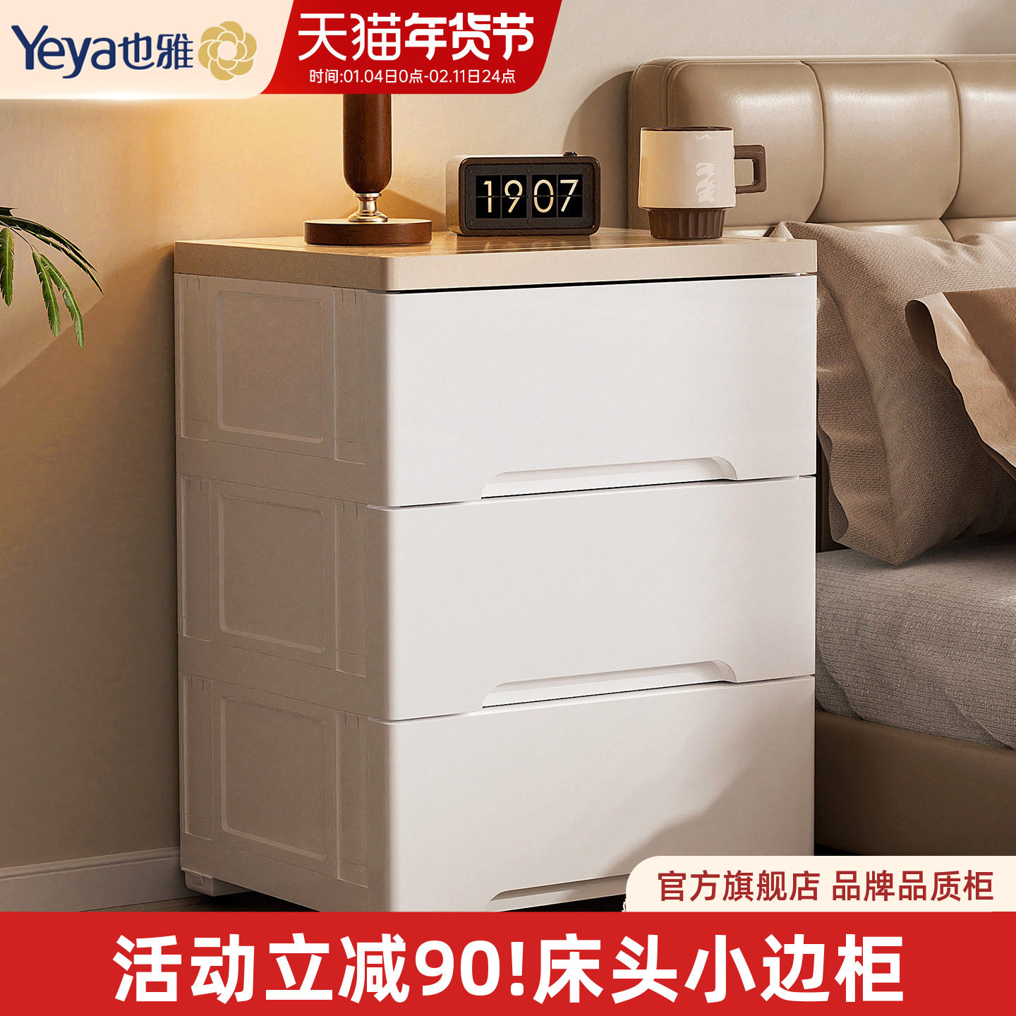 也雅床头柜家用卧室小型简易床边收纳柜塑料可移动窄夹缝置物柜子
