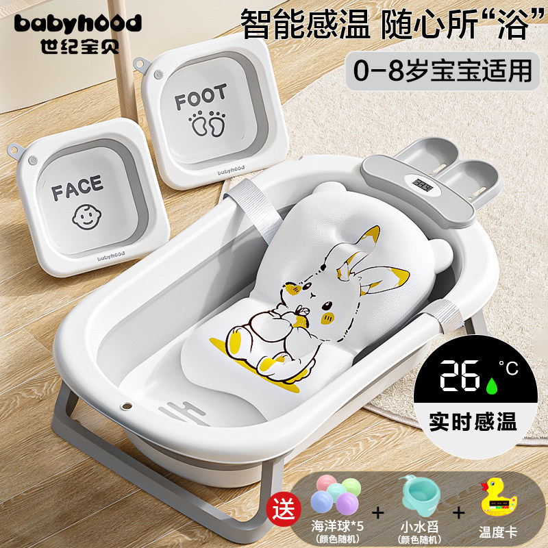 世纪宝贝婴儿洗澡盆儿童浴盆大号宝宝可折叠可坐可躺新生儿童用品