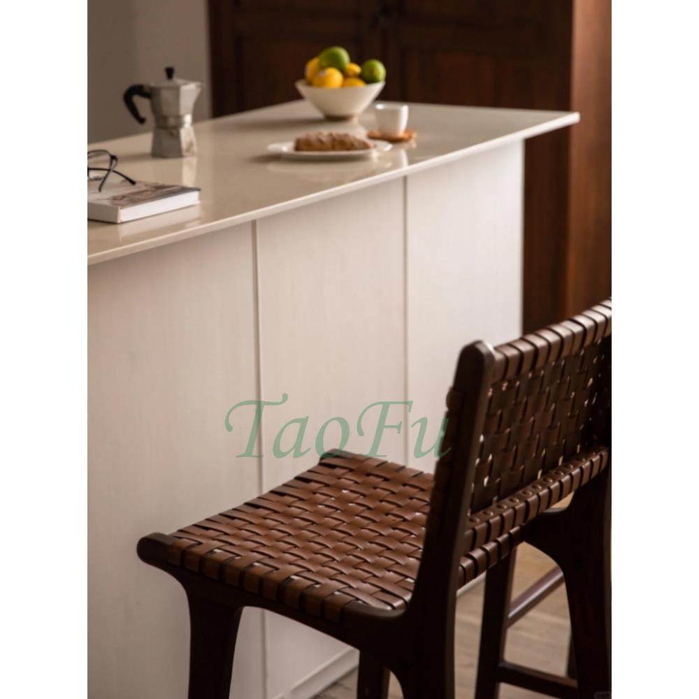 中古实木吧椅进口皮革靠背吧台高脚椅诧寂风民宿柚木家用岛台椅子