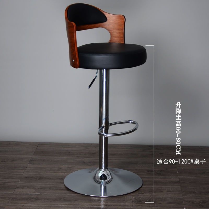 欧式实木吧台高脚椅酒吧椅升降高脚凳子前台椅旋转靠背吧凳搁脚椅
