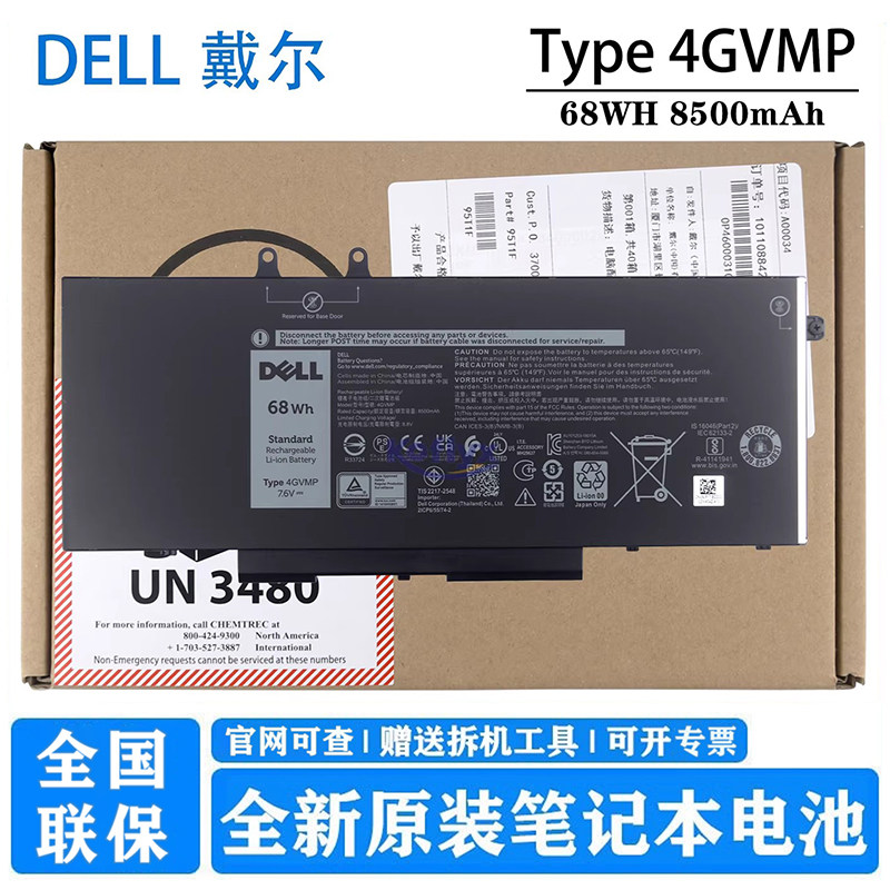 原装Dell戴尔 Latitude 5580 5480 5488 5490 5590 5280 5290 GJKNX 93FTF Precision 3520 3530 笔记本电池
