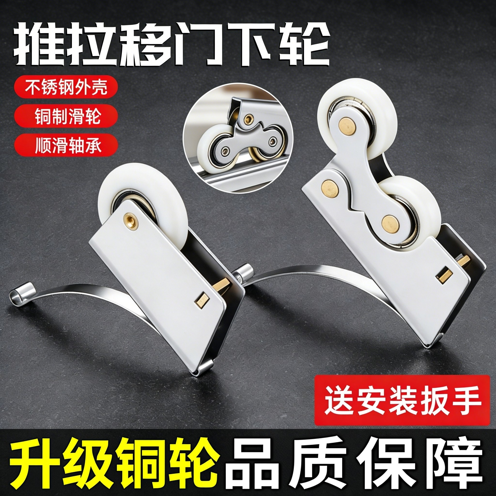 衣柜滑轮不锈钢推拉门卫生间厨房导轨道静音滚轮移门双地滑轮滚轮