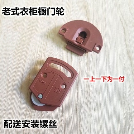 老式塑料柜门滑轮橱柜移门轮家具趟门轮小衣柜滑轮棕红色胶轮顶珠