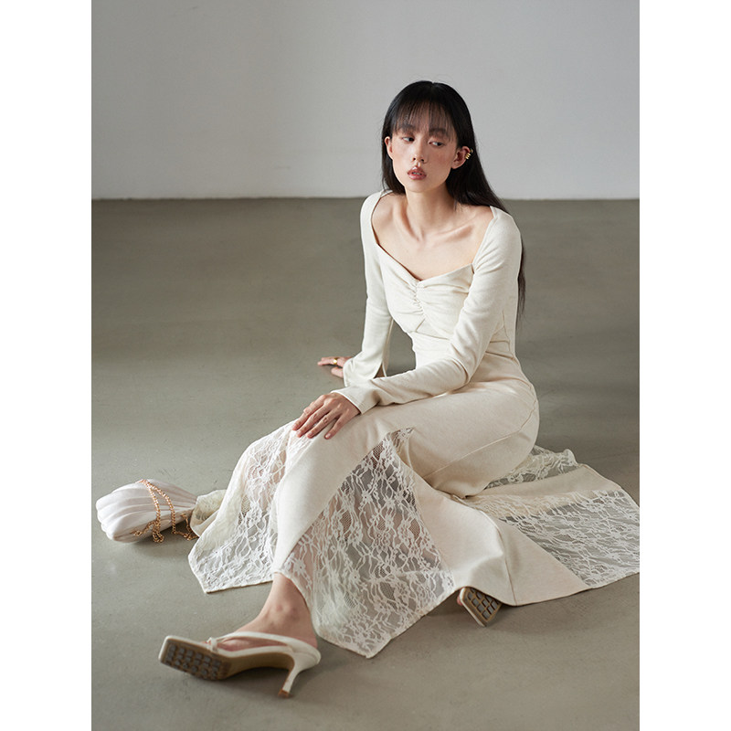 - 复古长袖蕾丝连衣裙