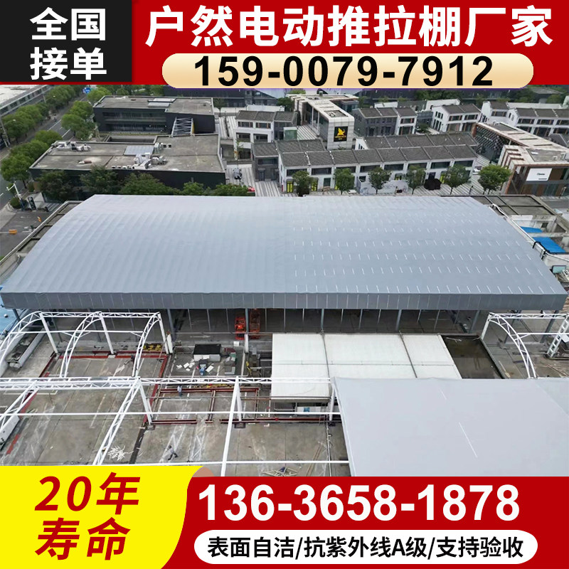 大型轨拉雨推拉蓬道空电动推蓬福州移动仓库伸缩雨棚屋顶悬腾空篷