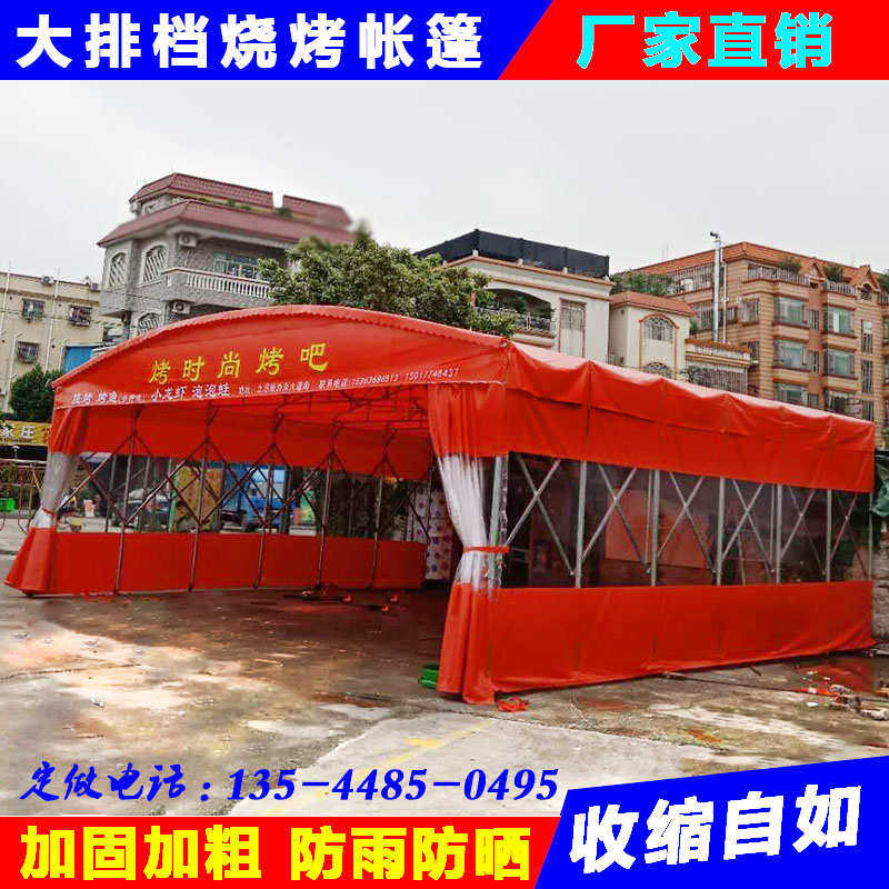 厂家直供夜宵移动推拉蓬工地活动伸缩雨棚大排档大型烧烤伸缩雨棚