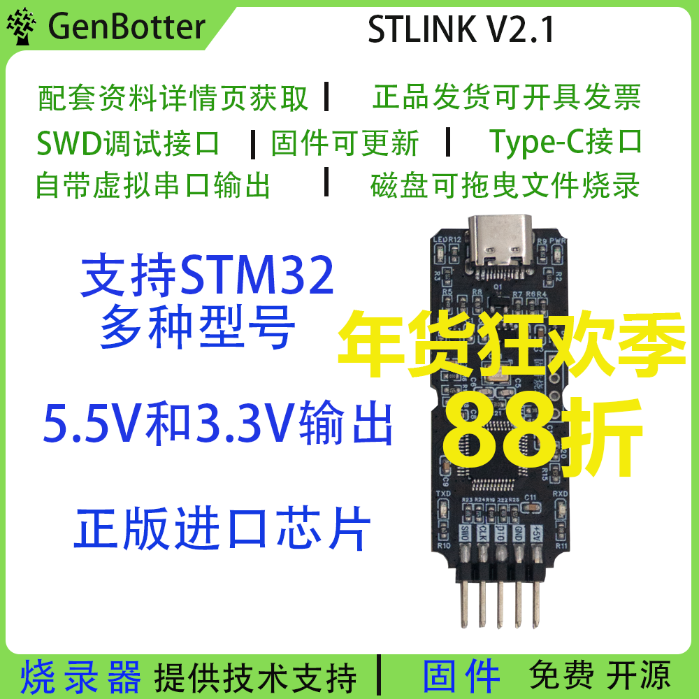 绿深STLINK V21下载器烧录器串口调试器TYPE-C口兼容性强可编程V2