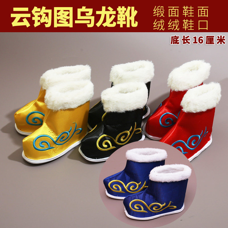 绒绒冬靴仙家靴子布靴中筒靴男款靴老爷靴子云钩图黑色仙鞋16厘米