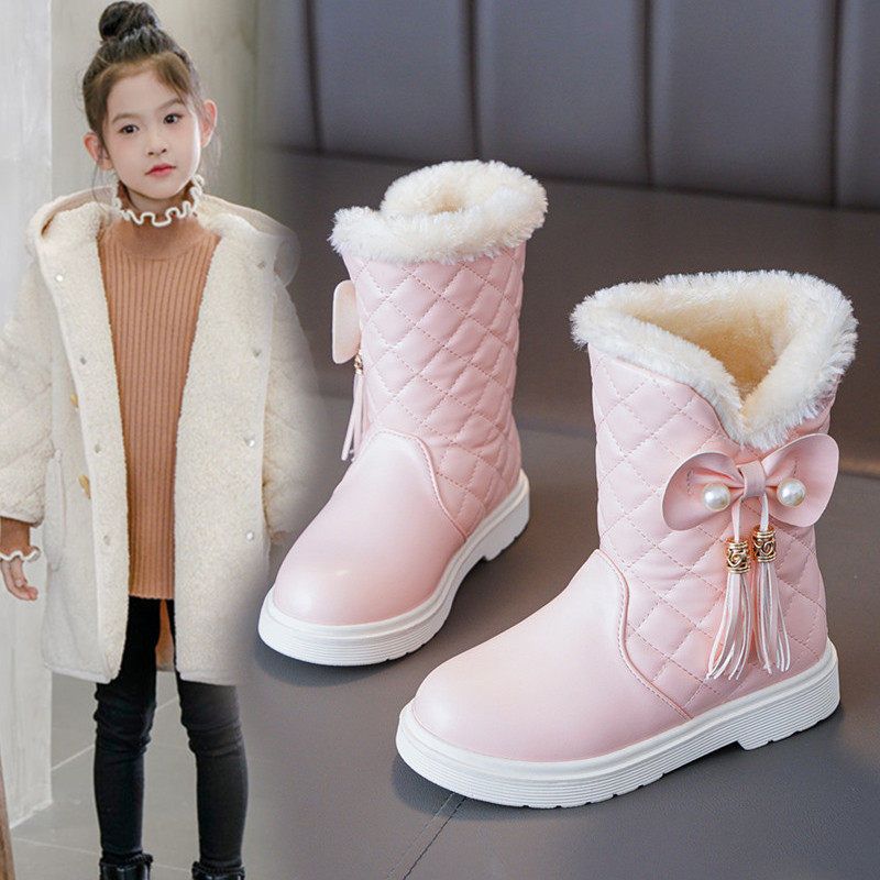 女童棉靴子公主冬靴2025冬季新款中大童加绒雪地靴7岁儿童中筒鞋9