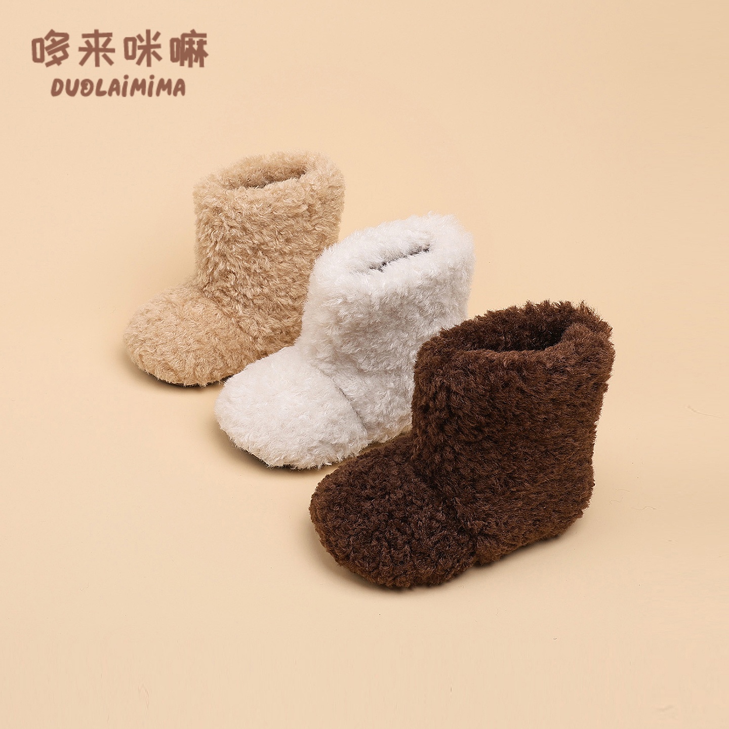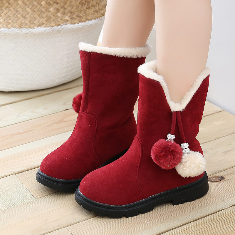 女童毛毛靴儿童纯色冬靴2025冬季新款女宝靴子保暖防滑棉靴中筒靴