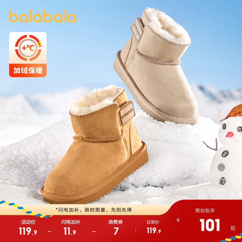 巴拉巴拉童鞋儿童雪地靴女童加绒保暖中筒靴冬靴子防滑棉靴春秋装