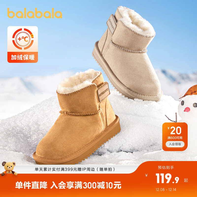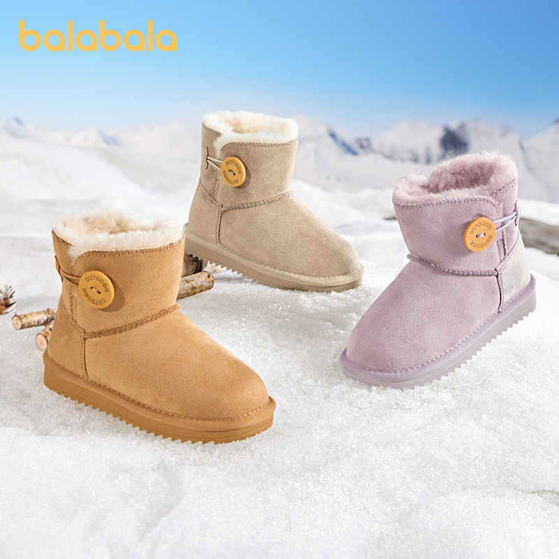 巴拉巴拉童鞋儿童雪地靴男女童棉靴加厚加绒中筒靴2025新款冬靴子
