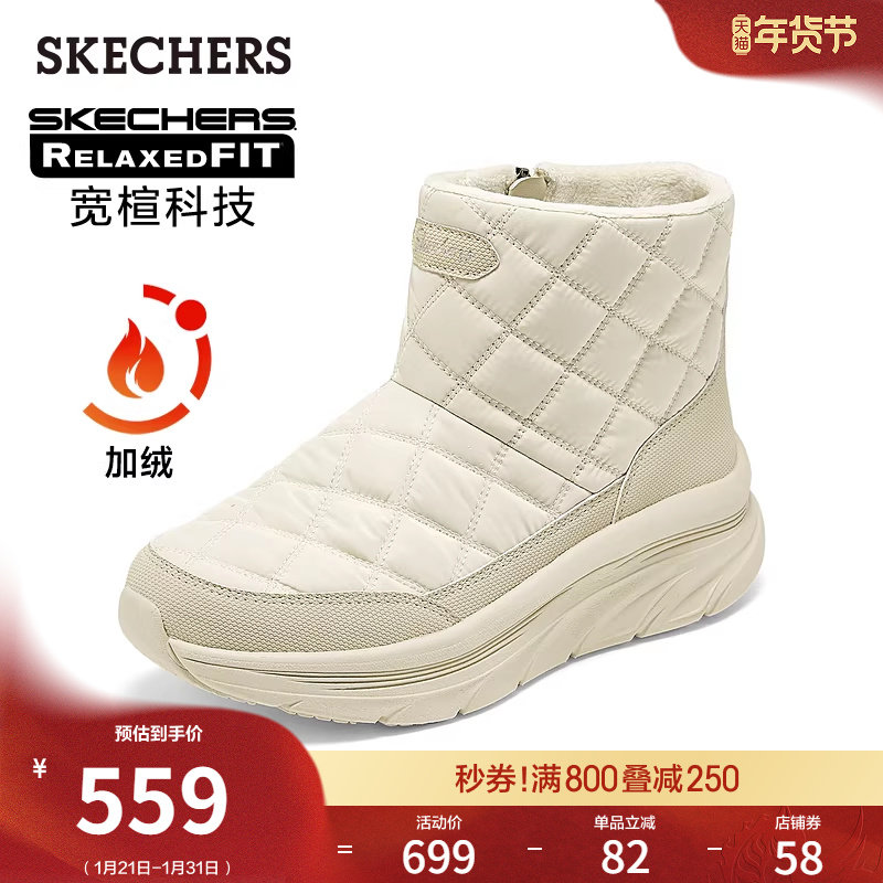 斯凯奇冬靴女冬季厚底增高雪地靴加绒保暖棉鞋时尚百搭宽楦中筒靴