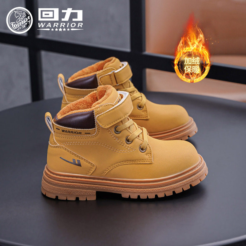 回力男童马丁靴2025冬季新款中筒冬靴男孩英伦风靴子加绒儿童皮靴