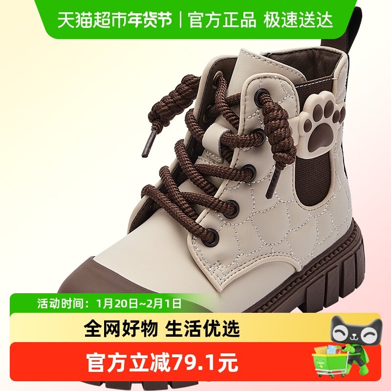 巴拉巴拉童鞋儿童马丁靴女童复古中筒靴舒适秋冬靴子时尚百搭潮流