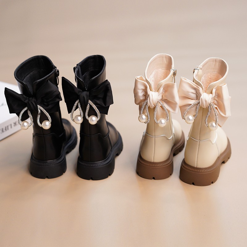 女童靴子童鞋2025秋冬季新款儿童冬靴公主加绒马丁靴中筒洋气棉靴