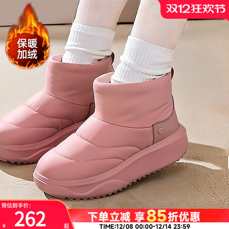 斯凯奇冬季女厚底增高雪地靴中筒冬靴加绒保暖棉鞋舒适轻便面包靴