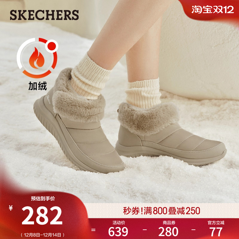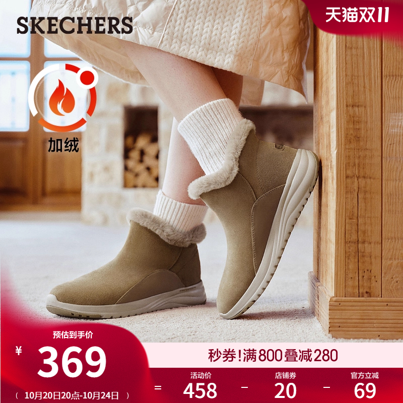斯凯奇毛皮雪地靴冬女鞋加绒保暖中筒冬靴舒适防寒靴厚底缓震棉鞋