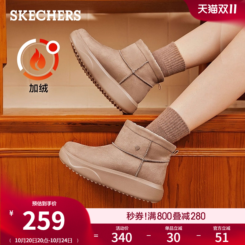 斯凯奇面包靴女鞋2025冬新款雪地靴保暖靴子厚底中筒靴冬靴休闲鞋