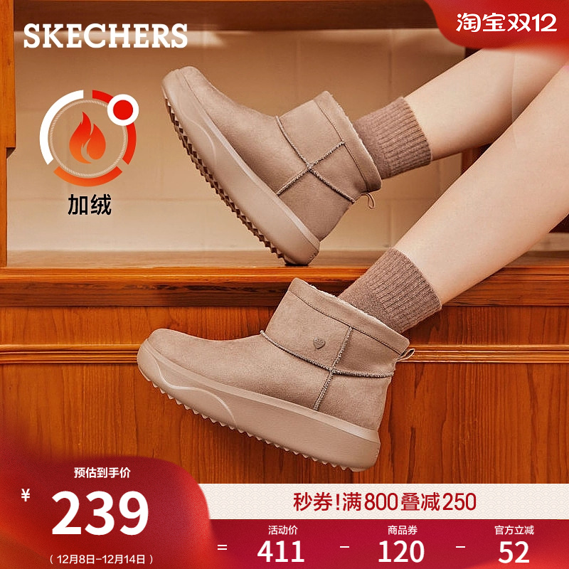 斯凯奇麻薯靴冬季女款加绒保暖雪地靴厚底增高中筒冬靴棉鞋防寒靴