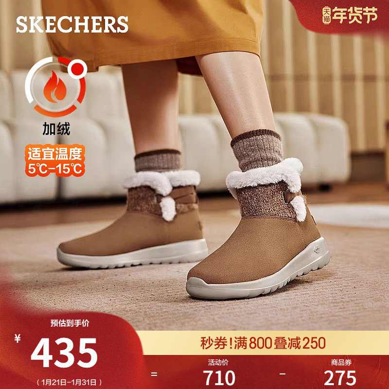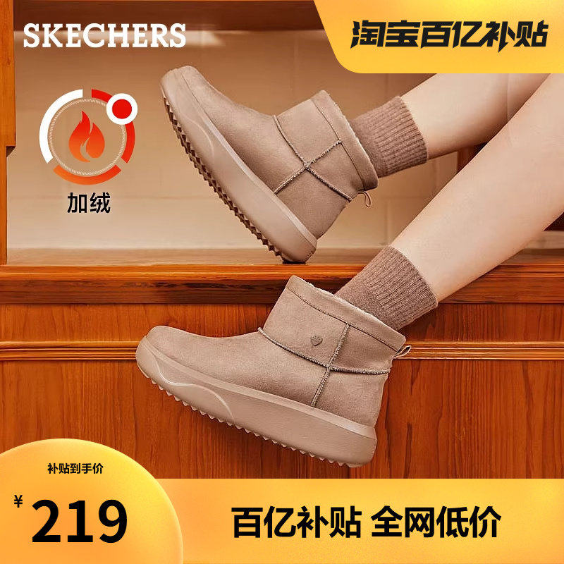 斯凯奇冬季女加绒保暖雪地靴厚底中筒冬靴舒适防寒棉鞋百搭休闲靴