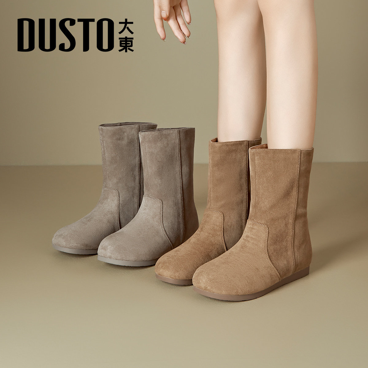 大东黑色短靴女2025新款秋冬靴子复古厚底西部骑士靴小个子中筒靴