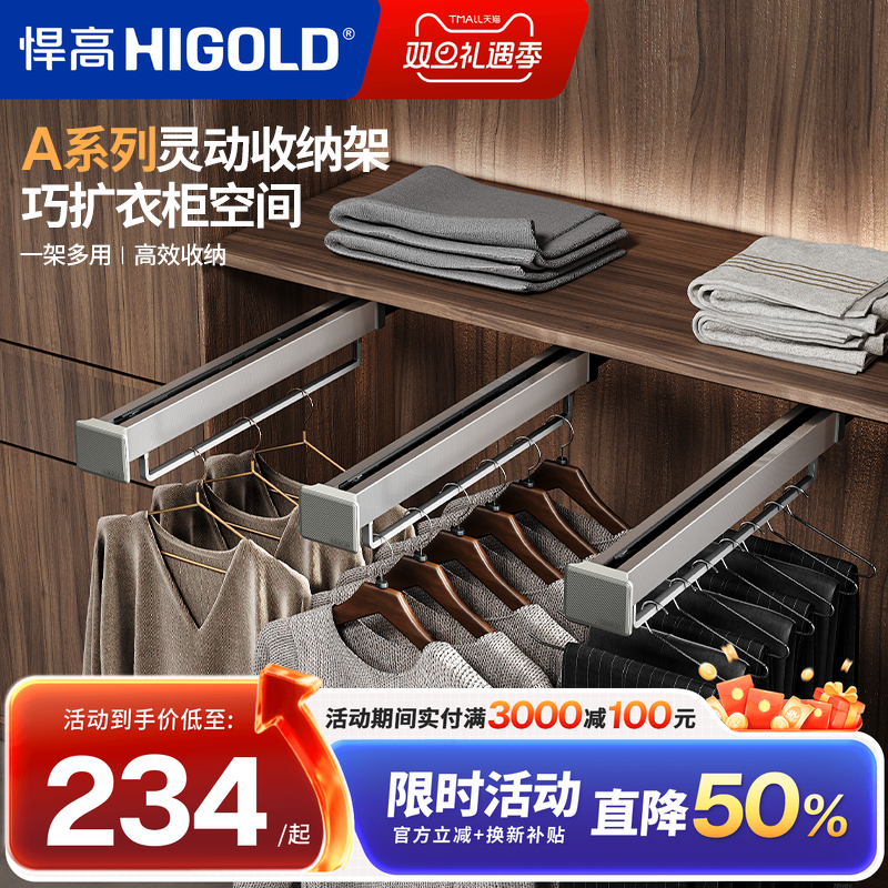 悍高衣柜顶装收纳裤架家用衣帽间伸缩抽屉拉篮推拉式衣橱五金配件