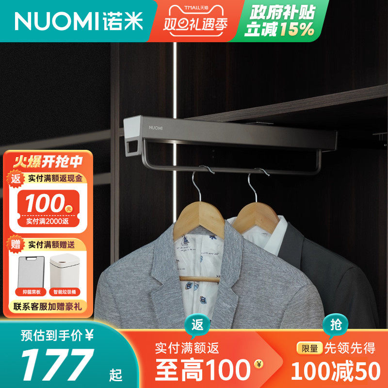 NUOMI诺米衣柜顶装阻尼收纳裤架伸缩挂衣杆衣架抽拉滑轨衣橱拉篮