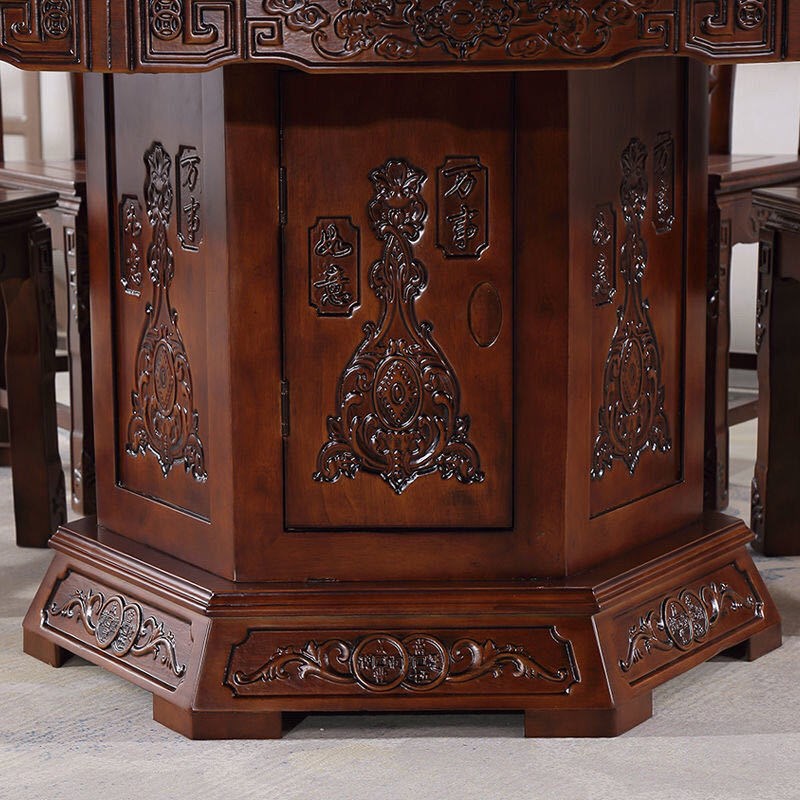 全实木大圆桌雕花橡木圆形餐桌家用饭店10人中式仿古餐桌椅组合