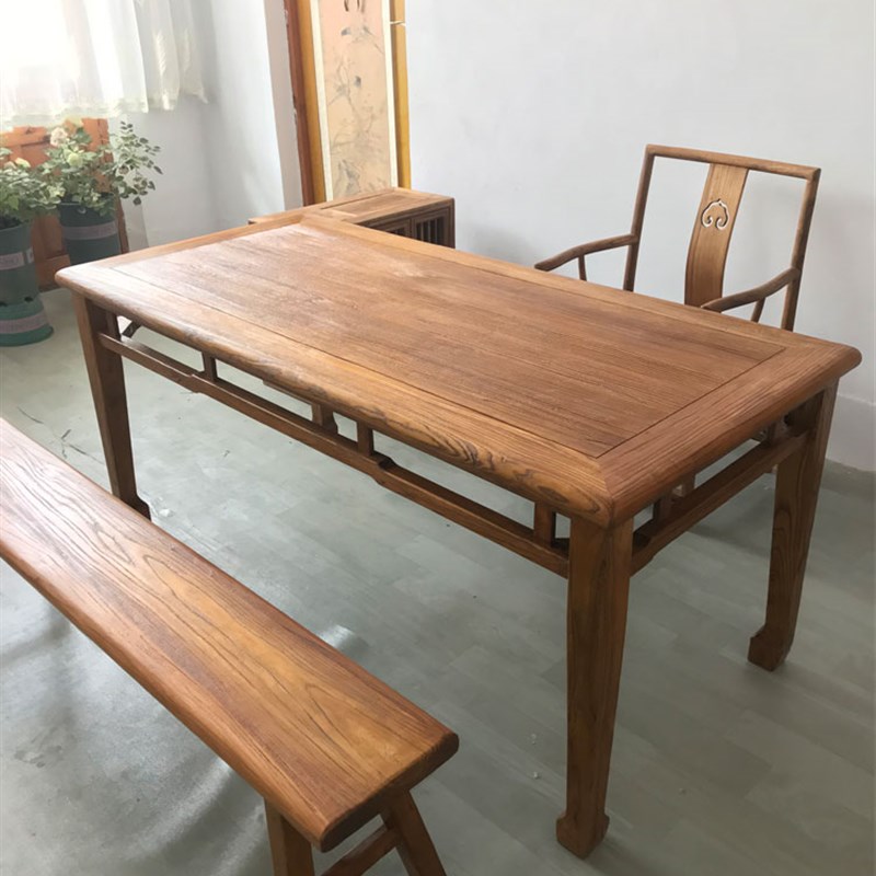 实木八仙桌风化老门板民宿仿古餐桌家用长条凳四方中式.老榆木茶