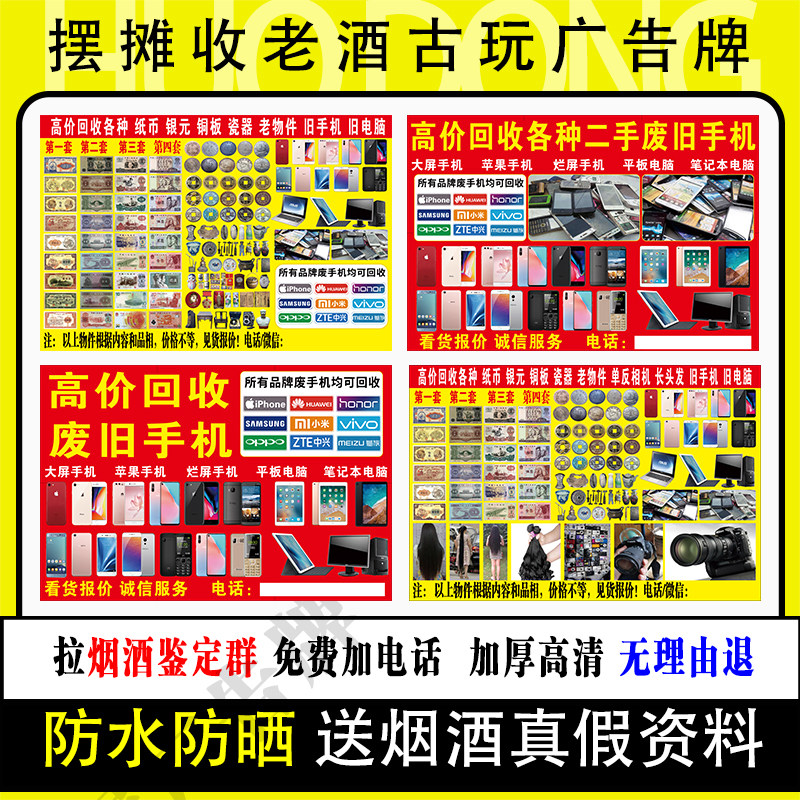 旧手机广告牌地摊布喷绘布废旧手机电脑摆摊回收高清KT板户外写真