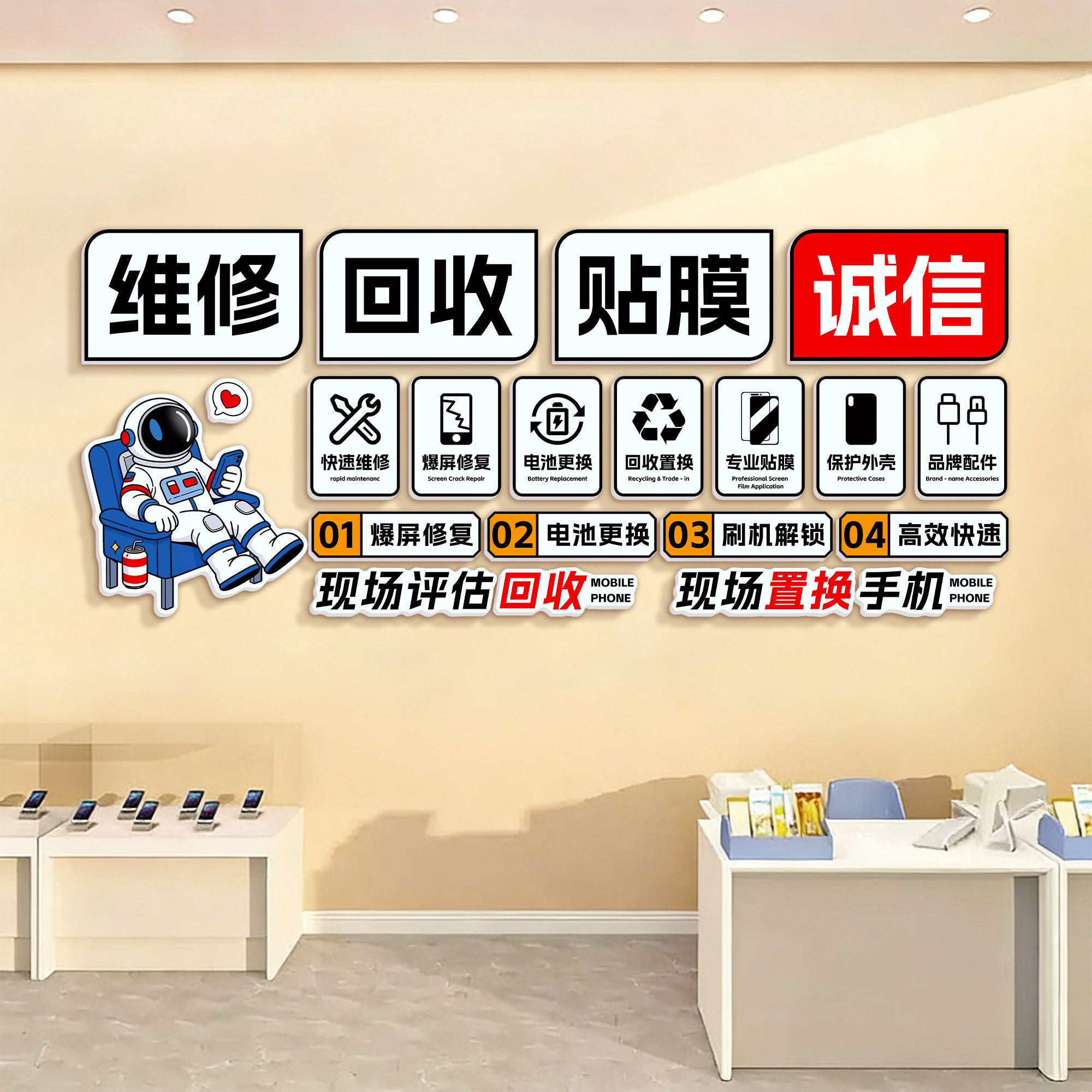 手机维修店广告贴纸海报形象墙手机回收店柜台装饰场景布置背景墙