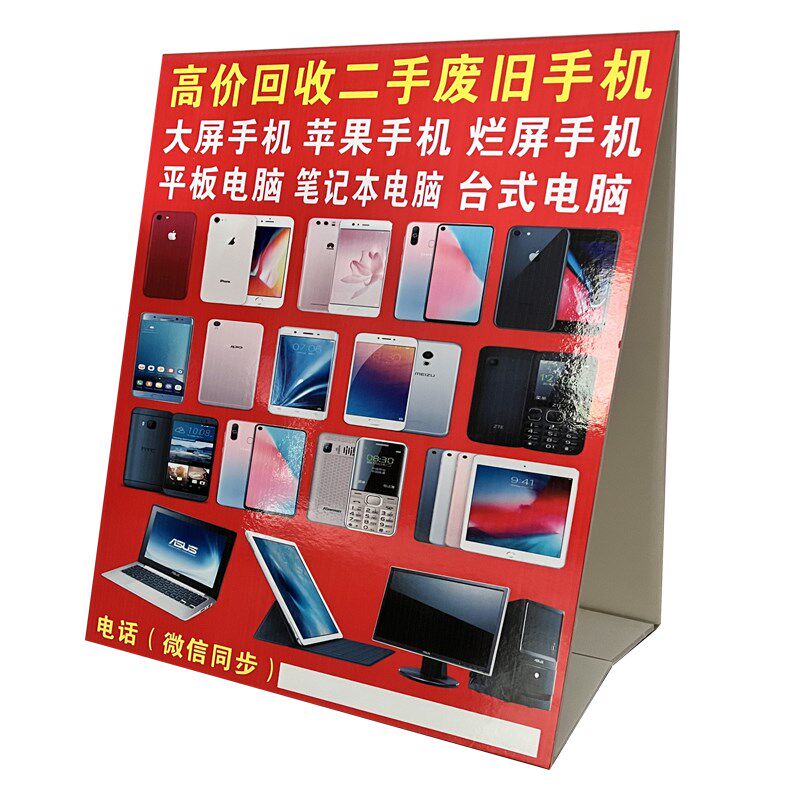 旧手机广告牌三角牌KT板收相机手表电脑数码相机摆台回收喷绘布