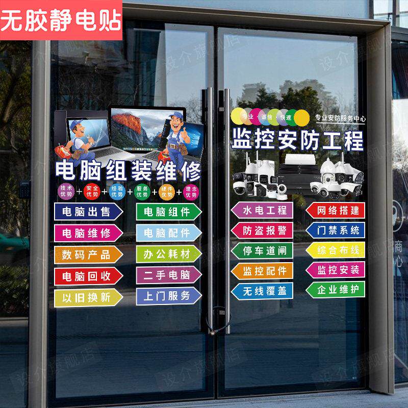 创意手机回收玻璃门贴纸手机保护膜监控安防电脑维修店铺装饰贴画