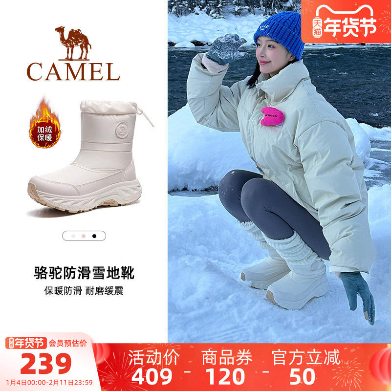 骆驼热雪2.0运动鞋冬季户外雪地靴高帮女鞋防滑防水加绒保暖棉鞋