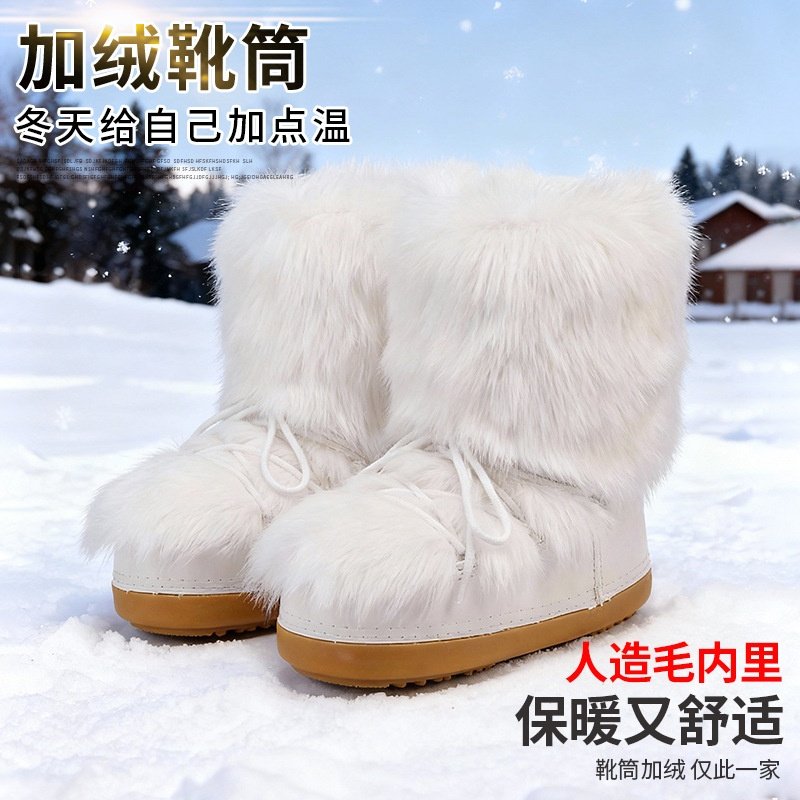 分销跨境靴筒加绒毛毛靴户外旅行厚底雪地靴女防水防滑保暖太空靴