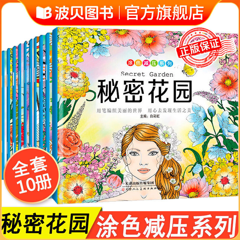 秘密花园涂色书正版全套10册 手绘画涂鸦填色本 成人减压涂色书大人儿童版小学生神秘花园奇幻森林画入门自学零基础教材教程书籍