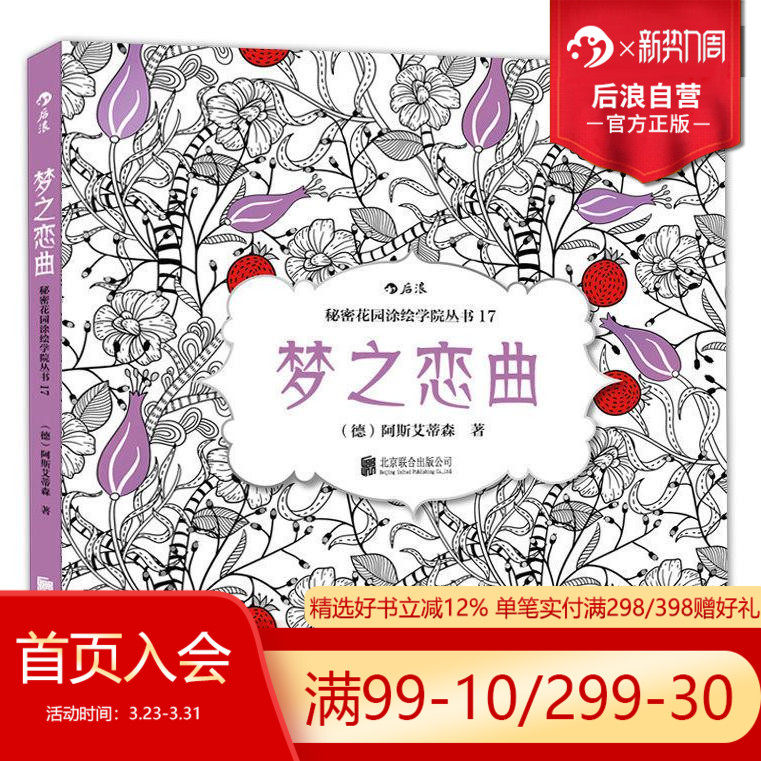 后浪正版 梦之恋曲 秘密花园系列 成人填色涂色书 解压减压手绘册绘画图画本 小学生通用