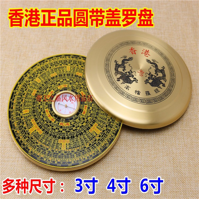 香港正品祥龙3寸4寸6寸纯铜风水罗盘高精度初学入门圆形带盖罗盘