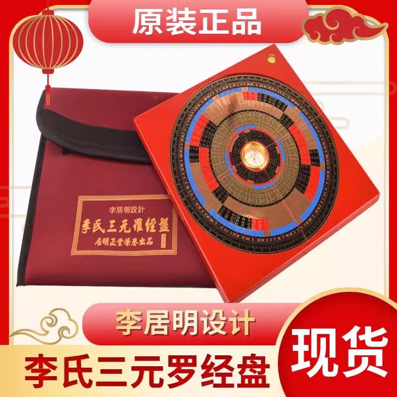李居明罗盘蓝光正品专业新款风水盘黄铜高精度纯铜罗经仪6寸9寸
