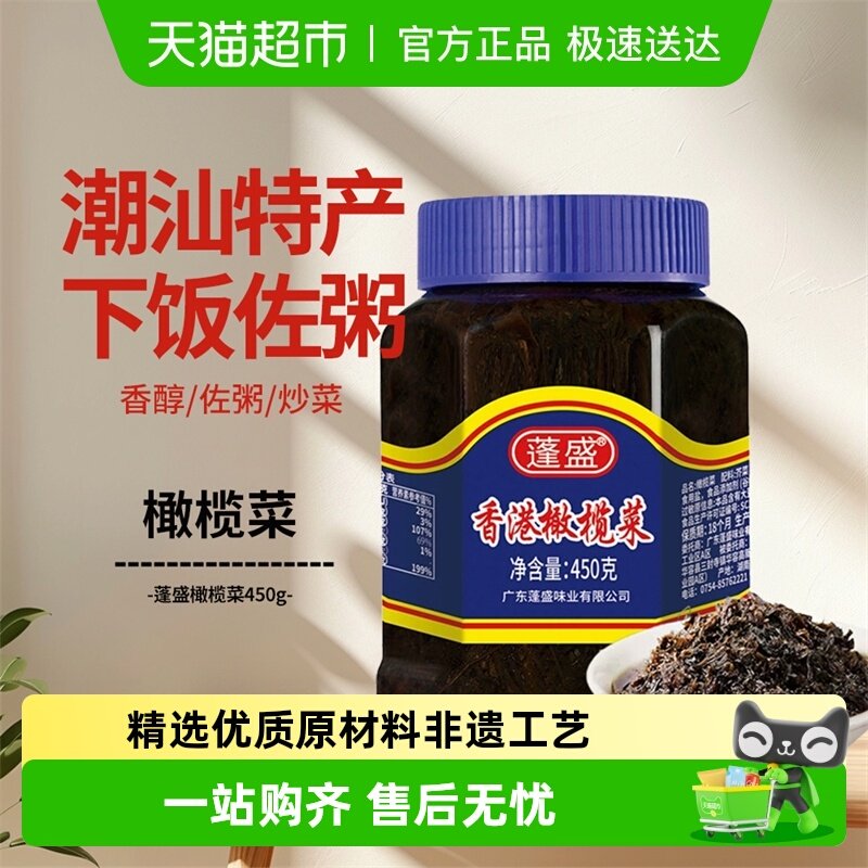 蓬盛香港橄榄菜450g大瓶装拌面喝粥开胃菜下饭菜咸菜广东潮汕特色