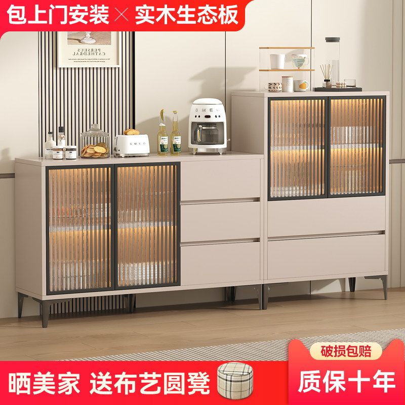 实木生态板餐边柜靠墙一体厨房橱柜客厅置物柜轻奢酒柜家用储物柜