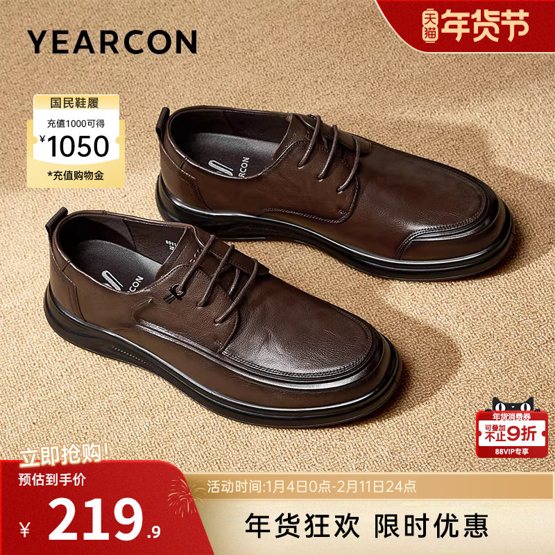 金猴皮鞋男2026春季新款真皮商务休闲系带英伦风工作通勤舒适男鞋